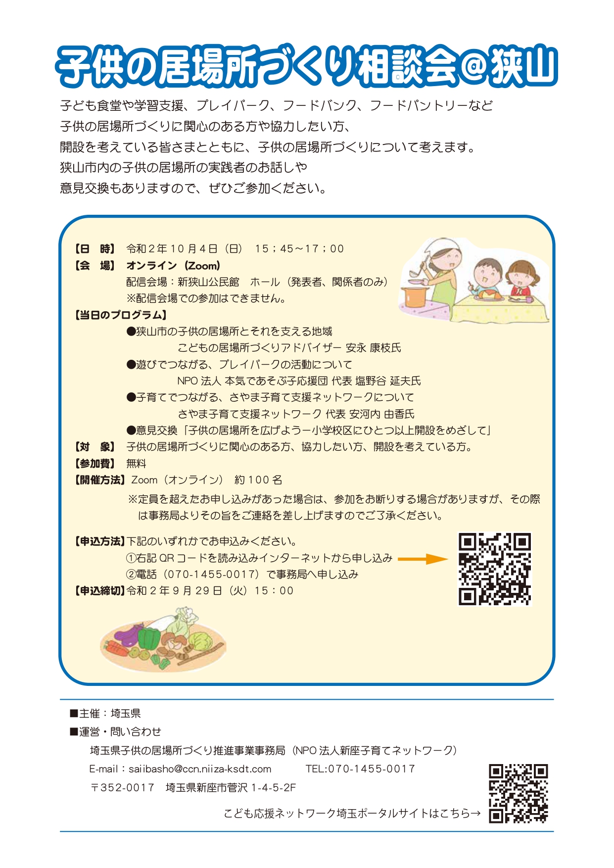 子供の居場所づくり相談会@狭山 10/4 開催!