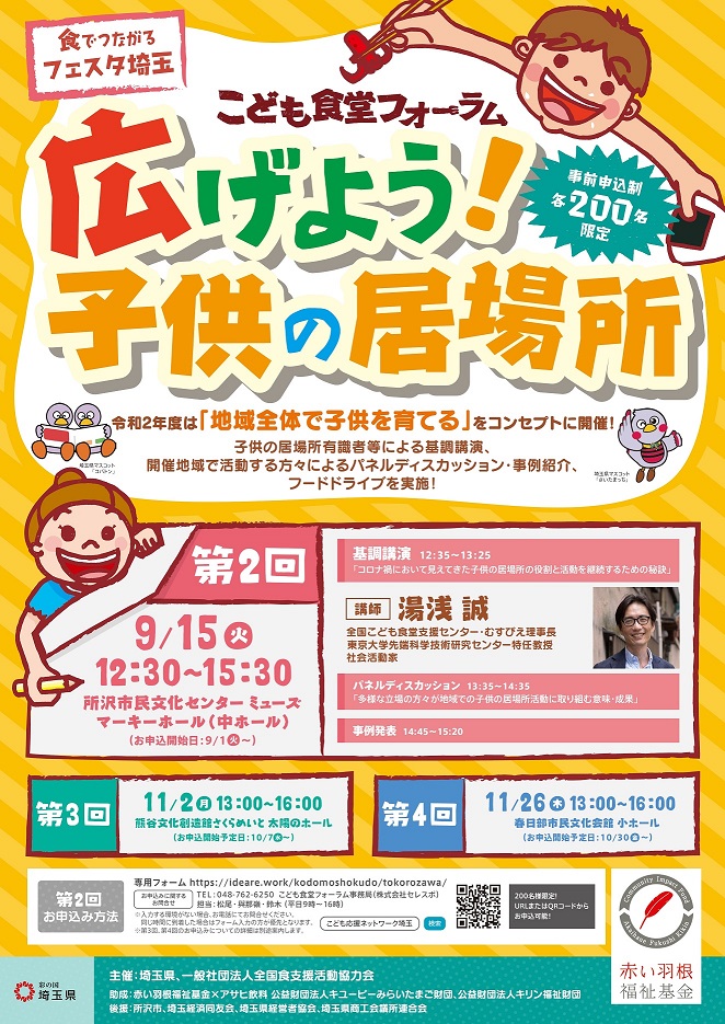 9月15日(火)に、所沢市民文化センターミューズにて開催する第2回子ども食堂フォーラム所沢会場の参...