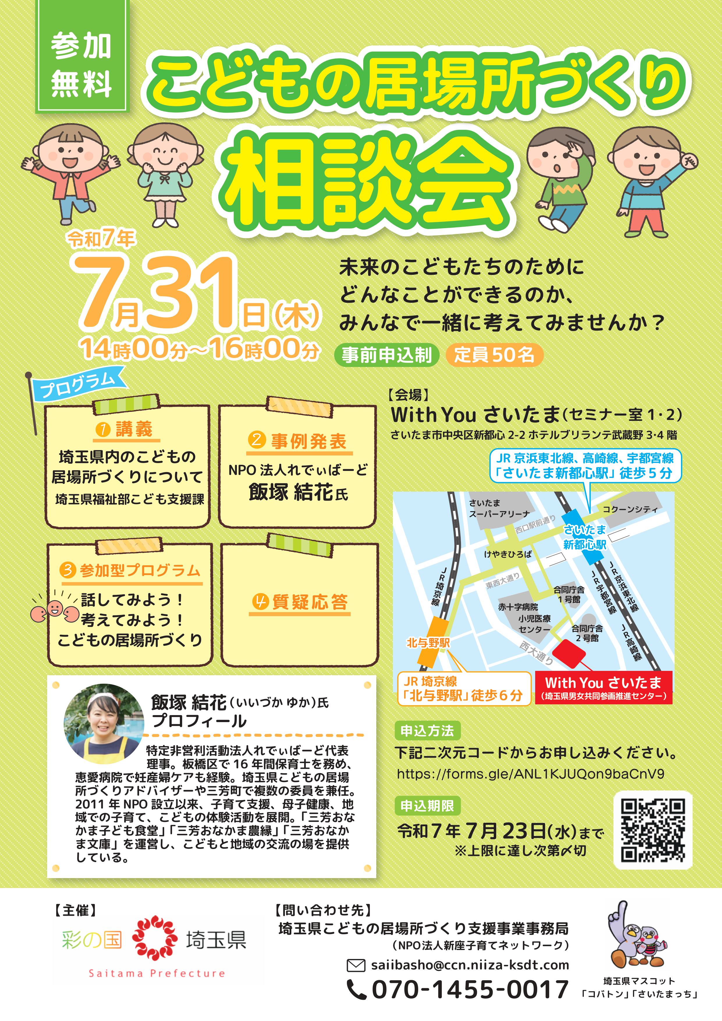 未来を担うこどもたちのために、あなたもこどもの居場所に関わってみませんか? 概要 ■開催日時:令和7...
