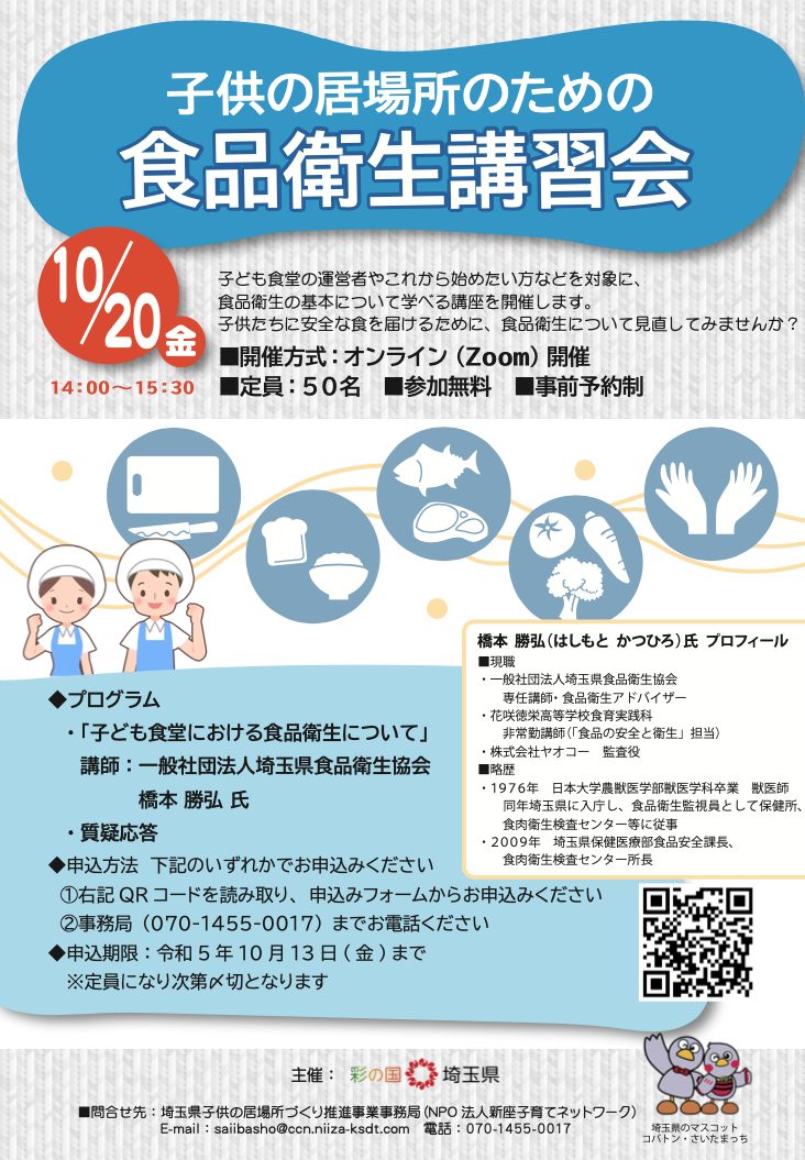 子ども食堂の運営者やこれから始めたい方などを対象に、 食品衛生の基本について学べる講座を開催します。...