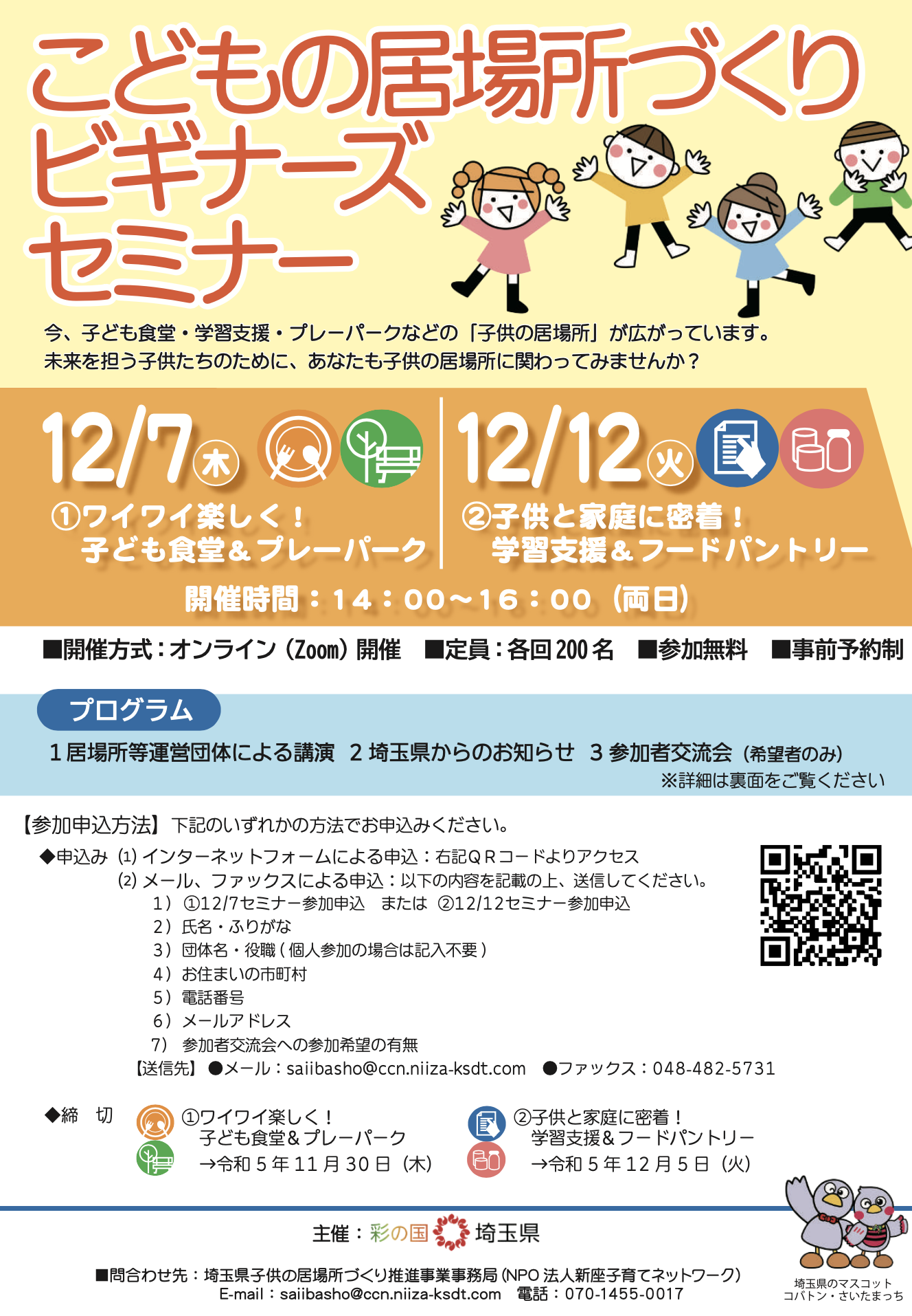 12/7(木)・12/12(火)こどもの居場所づくりビギナーズセミナー
