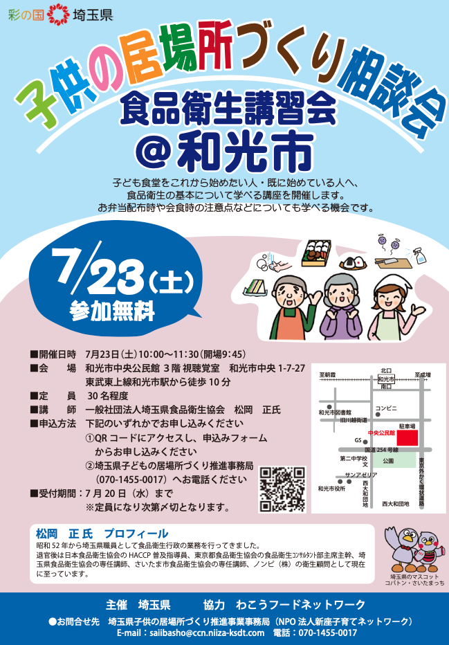 7/23(土)子供の居場所づくり相談会 食品衛生講習会@和光市